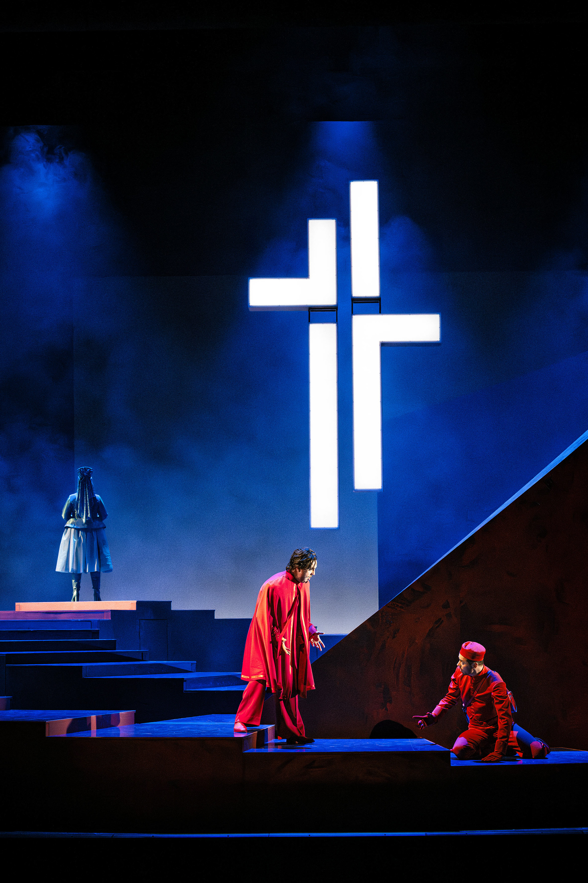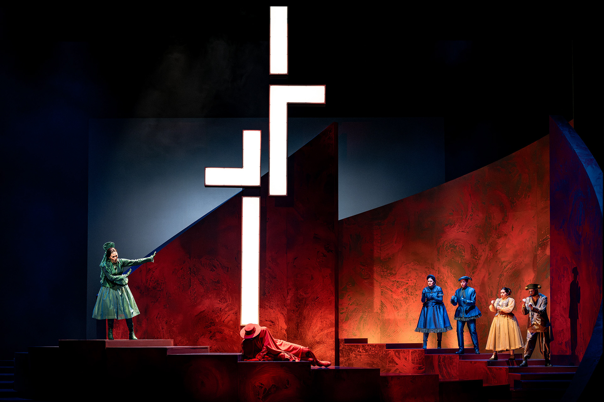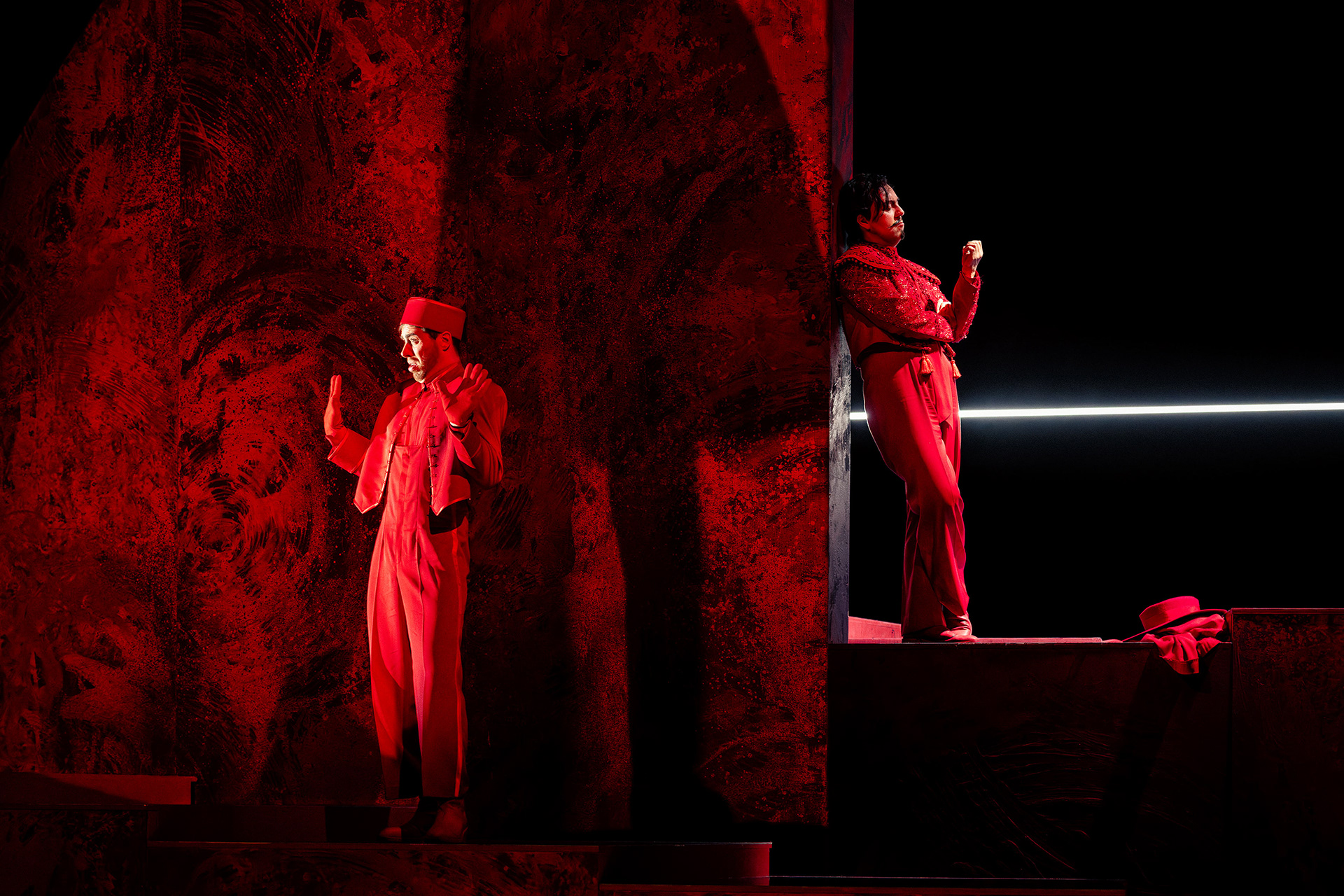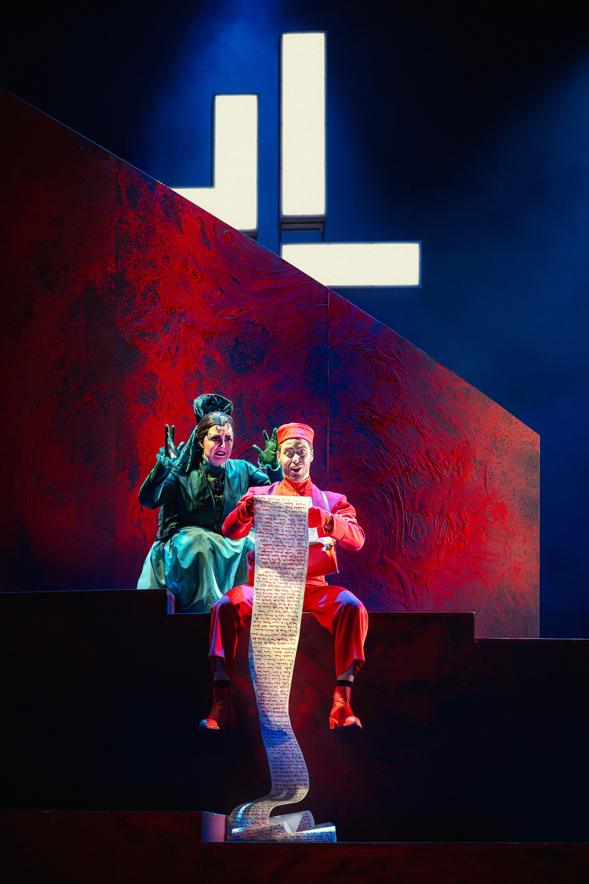 „[…] Muss man das auch noch gesehen haben? Ja, unbedingt! Das liegt in erster Linie an der Inszenierung von Dennis Krauß, der 2025 den Deutschen Theaterpreis „Faust“ für seine Regie in der Chemnitzer Oper „Sleepless“ (Eötvös) gewann und dieses Niveau erneut bestätigt. Die Handschrift ist unverkennbar: Fast die ganze Zeit dreht sich das abstrakt gehaltene Bühnenbild – Treppen, Wände und Schrägen in kräftigem Rot –, wodurch alle auf der Bühne in Bewegung bleiben müssen, um nicht gleich wieder zu verschwinden. Sie nehmen Mozarts Rhythmus auf, fast puppenspielerhaft. Nur Don Giovanni (dandyhaft: Thomas Esso) pfeift darauf, so wie er insgesamt die Regeln im streng katholischen Sevilla des 16. Jahrhunderts mit Füßen tritt. Die formale Strenge dieser Zeit findet sich auch in den Kostümen (Christina Geiger) wieder, jedoch klar und aufgeräumt wie das Bühnenbild. Kein unnötiges Schmuckwerk, dafür knallige Farben – hier wird auf den ersten Blick klar, wer wohin gehört.